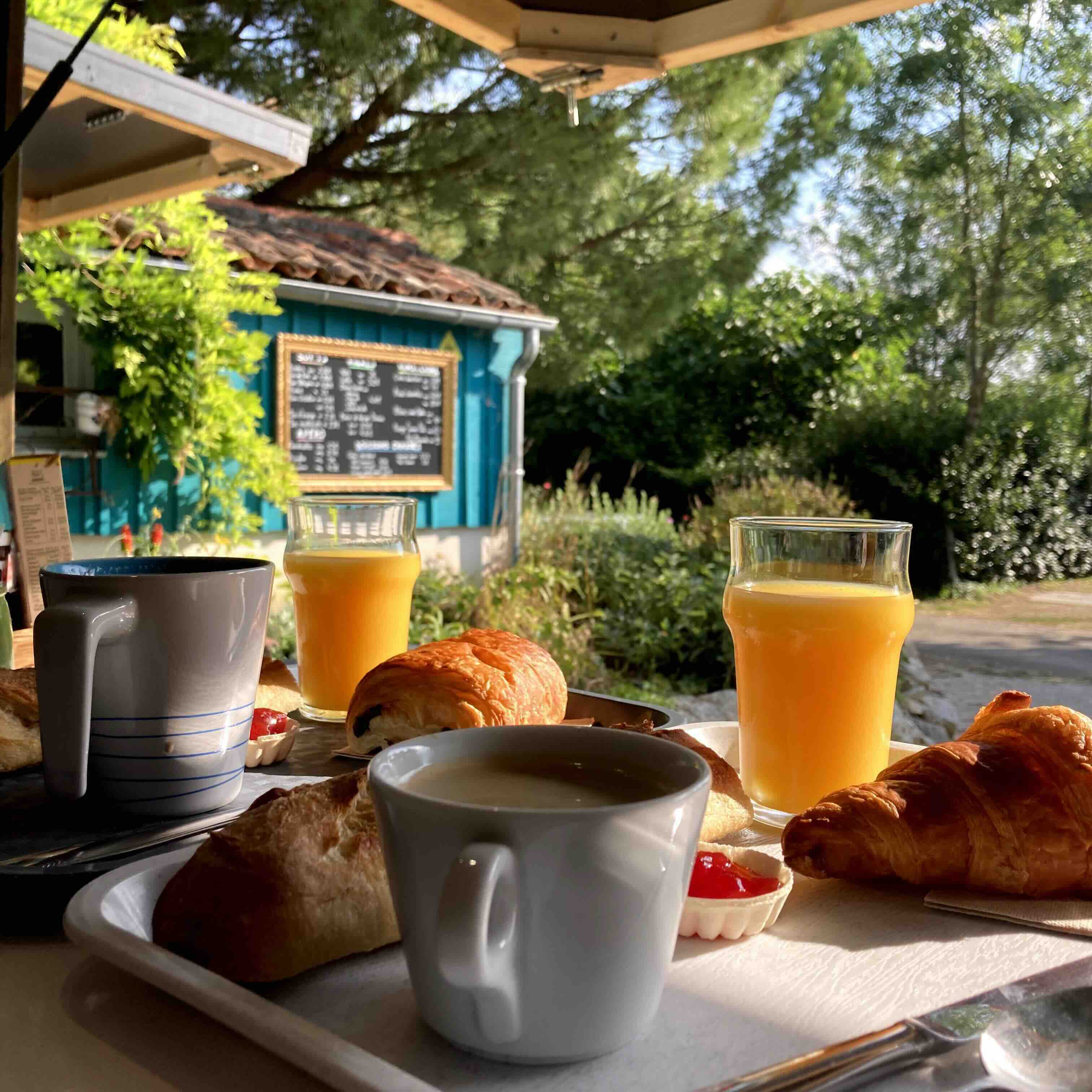 tous les matins pour un petit déjeuner sous les arbres fruitiers au chant des oiseaux. Sans oublier le bon café chaud ! (à partir du 7 juillet)